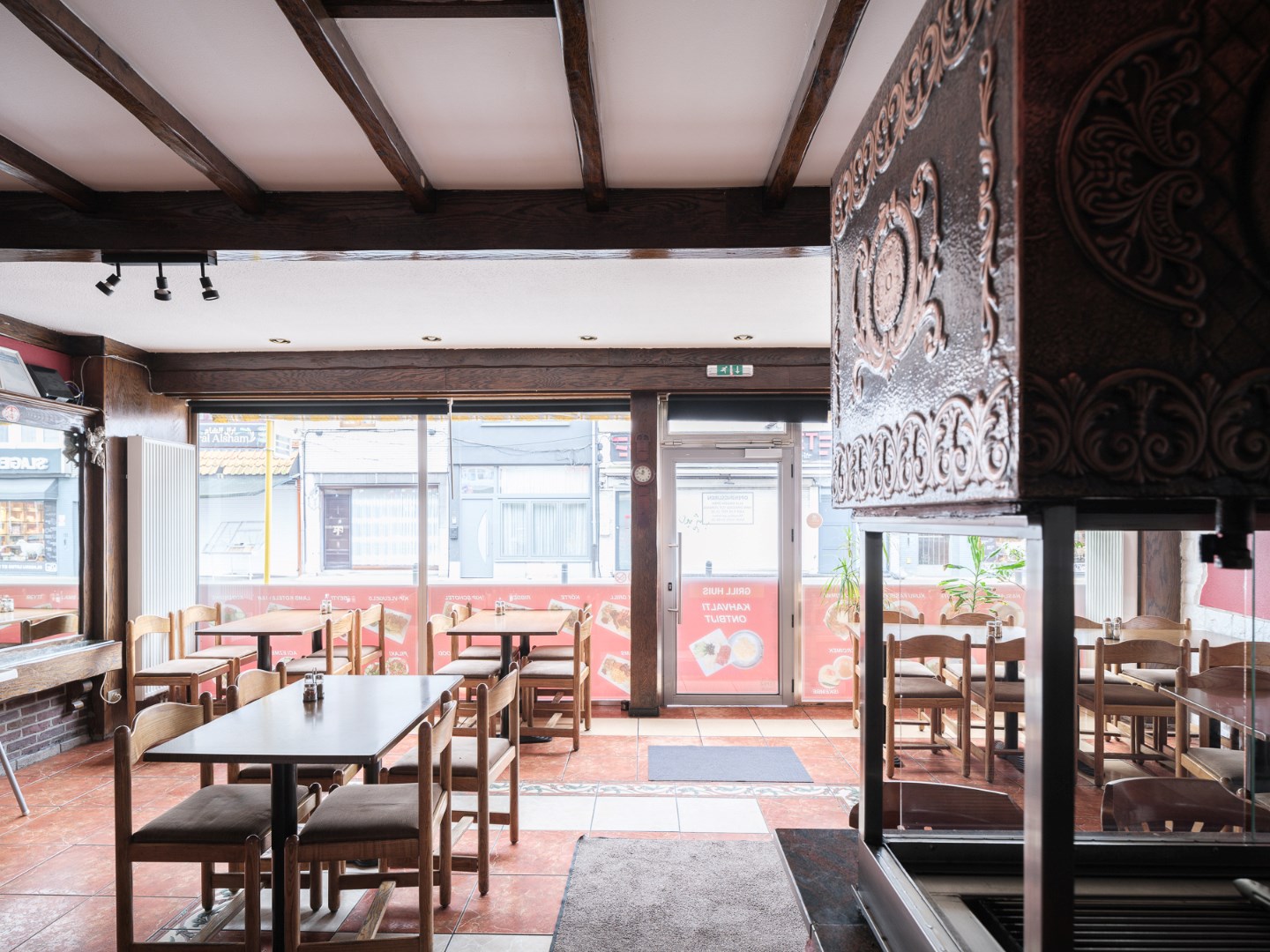 Bij binnenkomst op het gelijkvloers bevindt zich een ruime en verzorgde handelszaak, momenteel ingericht als restaurant. Deze ruimte is smaakvol afgewerkt en voorzien van moderne faciliteiten. De grote etalage zorgt niet alleen voor veel natuurlijk licht, maar trekt ook nieuwsgierige voorbijgangers aan. Achteraan is er een praktische keuken, volledig uitgerust en perfect voor culinaire ondernemers die een droomrestaurant willen uitbaten.
