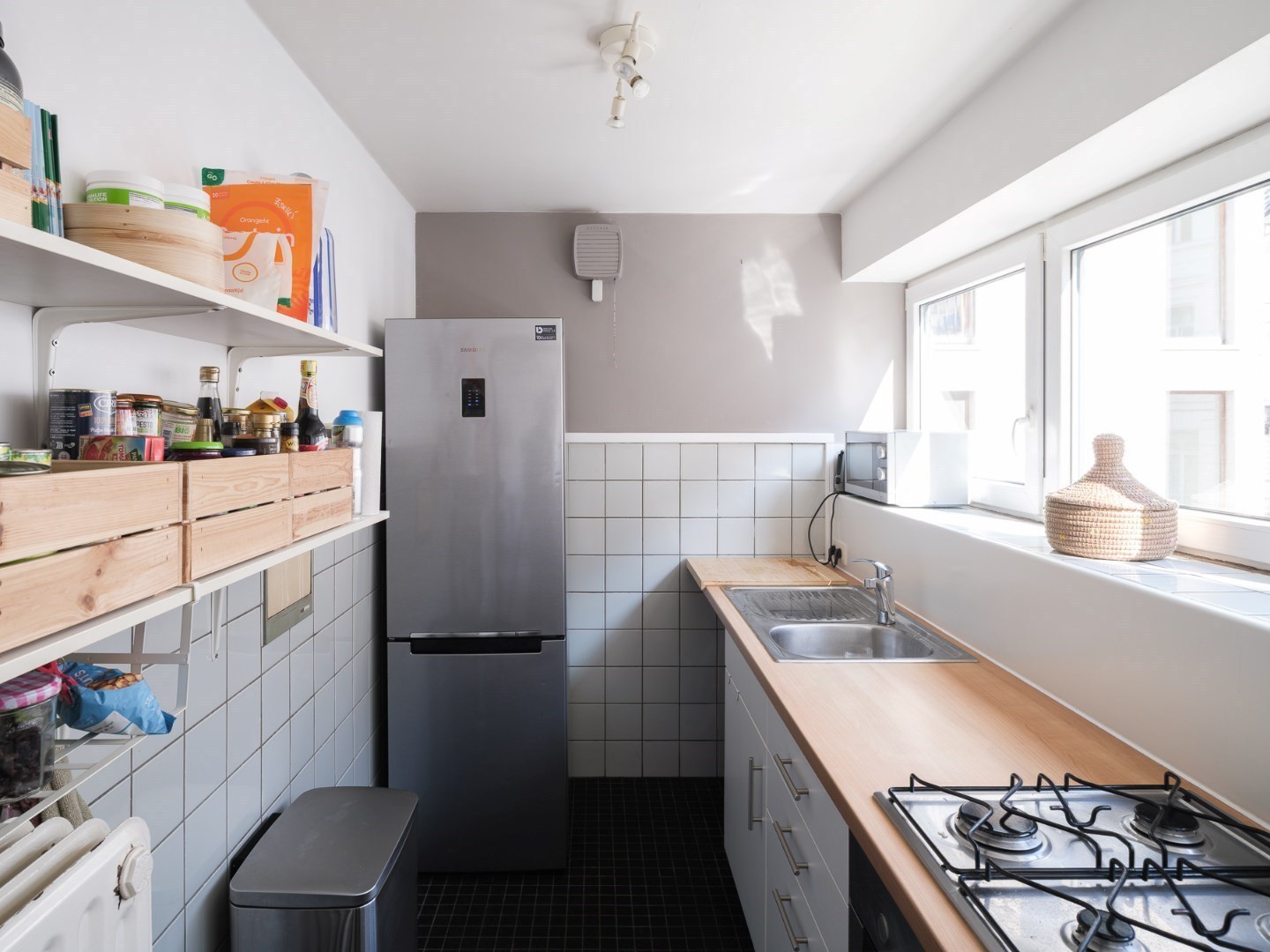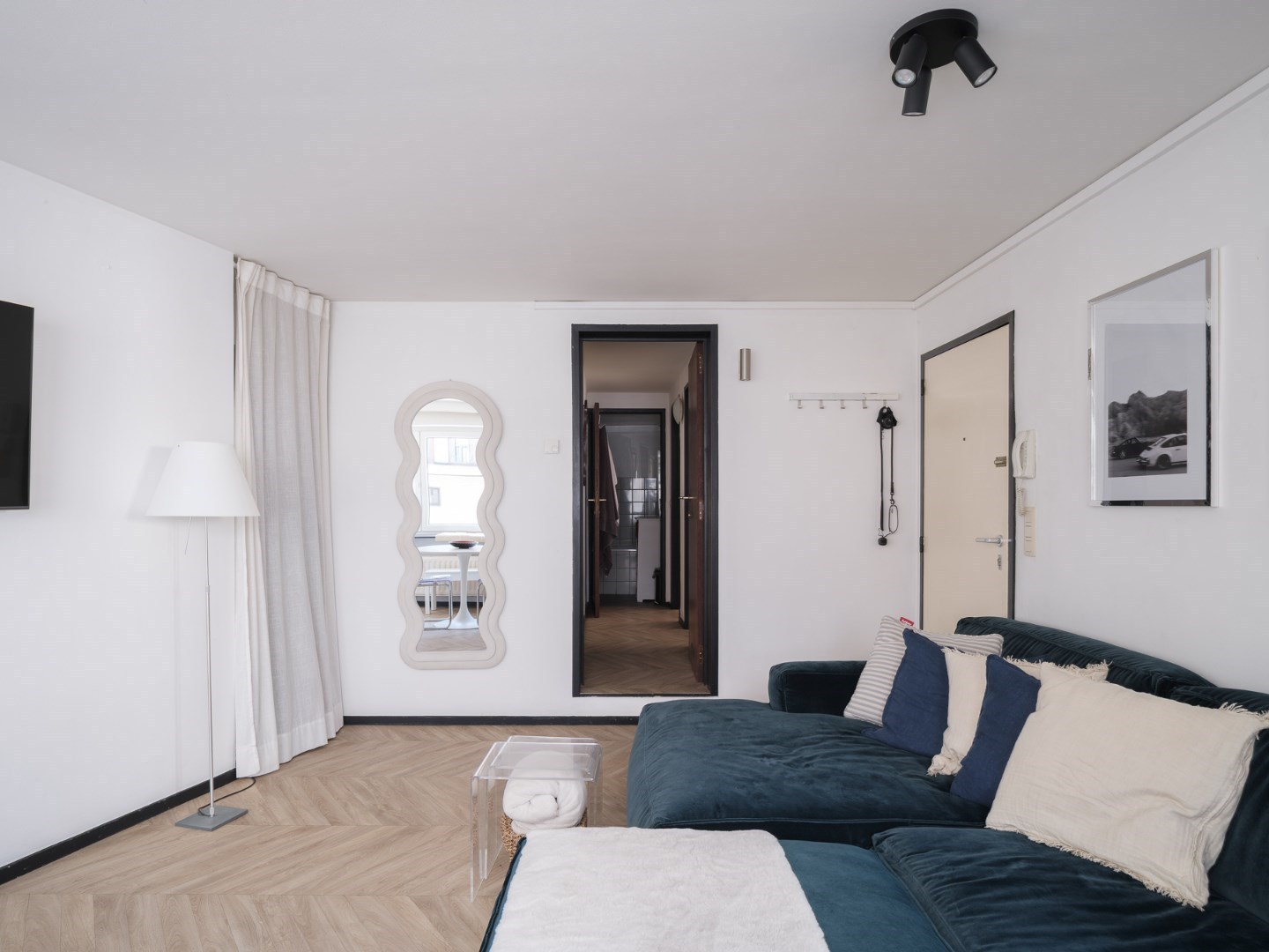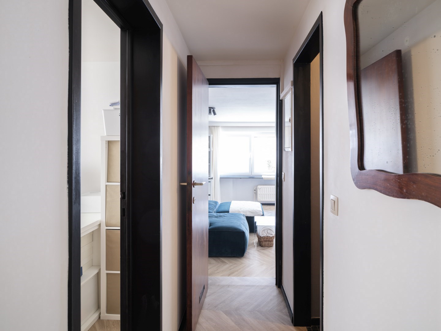 Het appartement zelf is erg functioneel. De heldere leefruimte biedt een aangenaam uitzicht op de Keizer Karelstraat en sluit naadloos aan op de uitgeruste keuken. Een praktische nachthal leidt naar een afzonderlijke berging, een gastentoilet en twee volwaardige slaapkamers. De badkamer is uitgerust met een ligbad voorzien van douchefunctie.