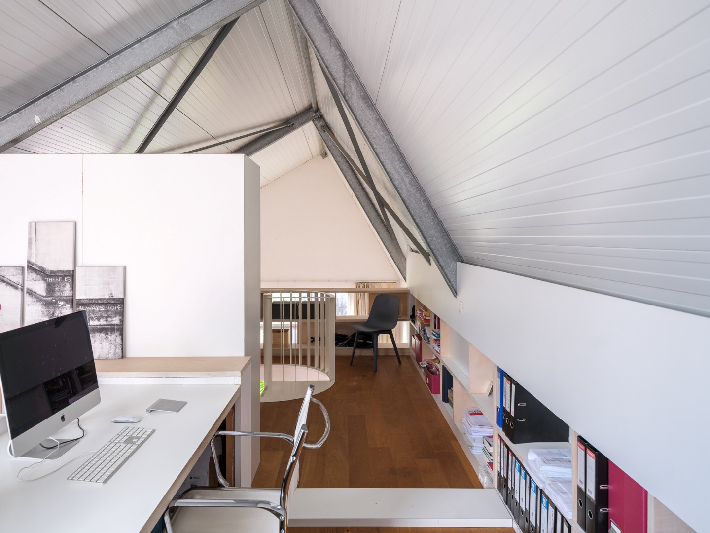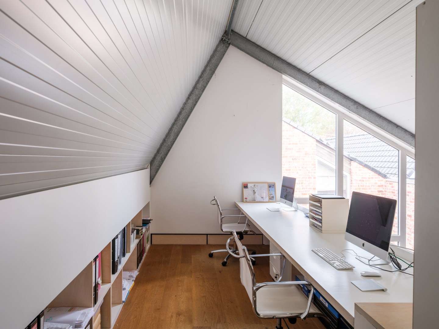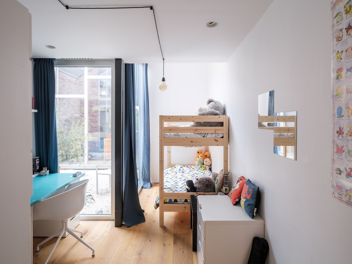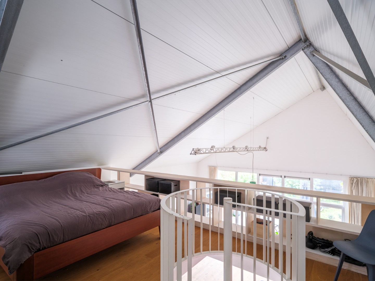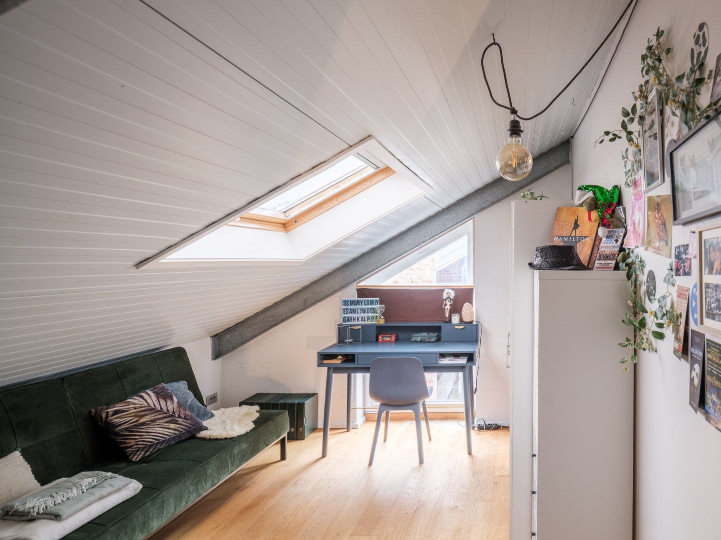 Waar lofts soms aan privéruimte ontbreken, werd achteraan de woning ervoor geopteerd vier afzonderlijke kamers te creëren. Grote badkamer, technische berging en toilet maken het geheel volledig af. Ideaal voor grote gezinnen of mensen met behoefte aan hobby- of werkplaats.