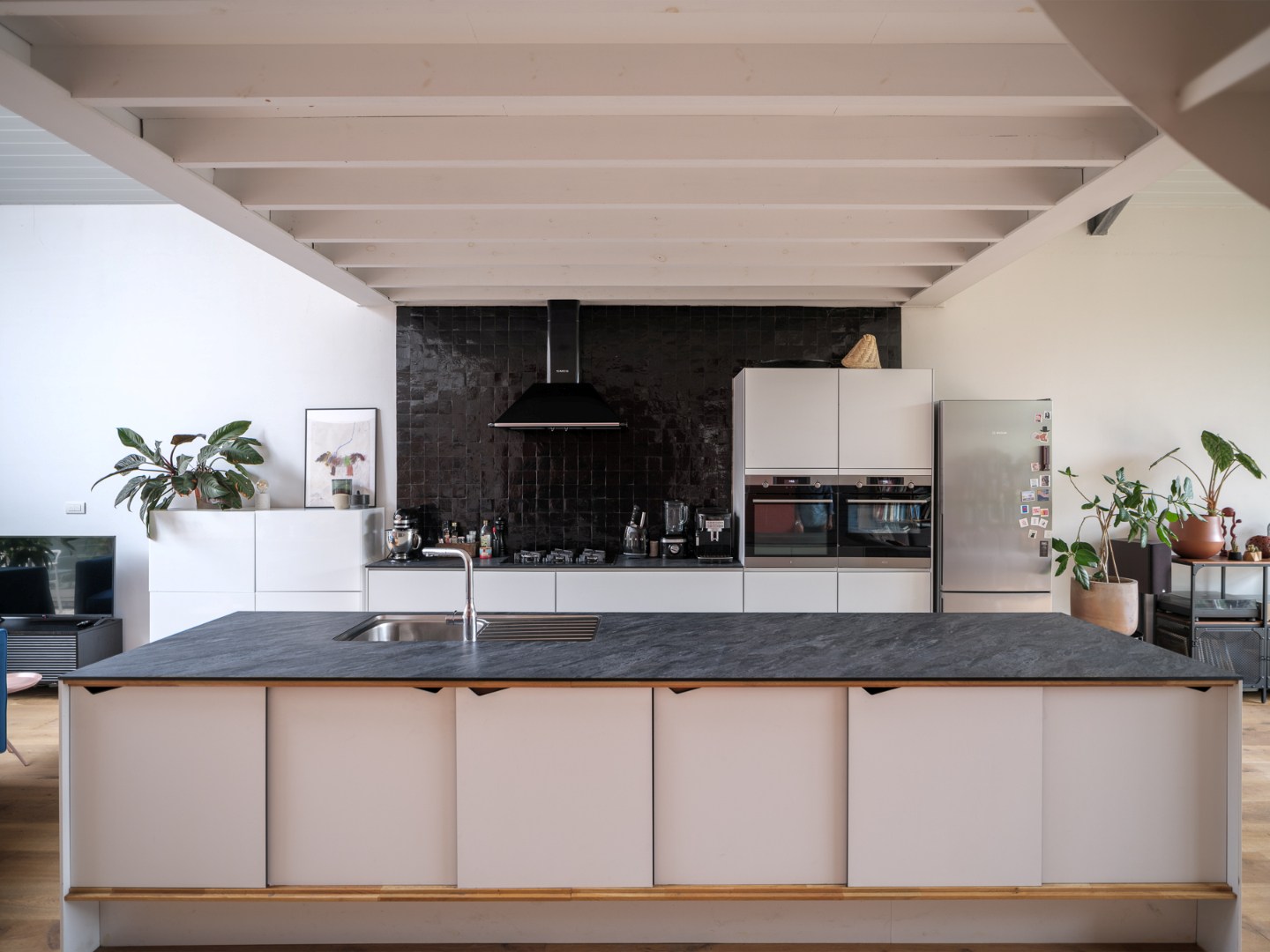 De woning wordt gekenmerkt door haar robuuste raampartijen, geweldige lichtinval en riante ruimtes. Meer dan 120m2 open space. Feilloze overgangen tussen leef-, keuken- en eetgedeelte, bureau- en berggelegenheid gaan hier hand in hand samen. Ook de royale mezzanine, met vrije invulling (slaap- of werkplaats), zorgt voor een dynamisch niveauverschil.